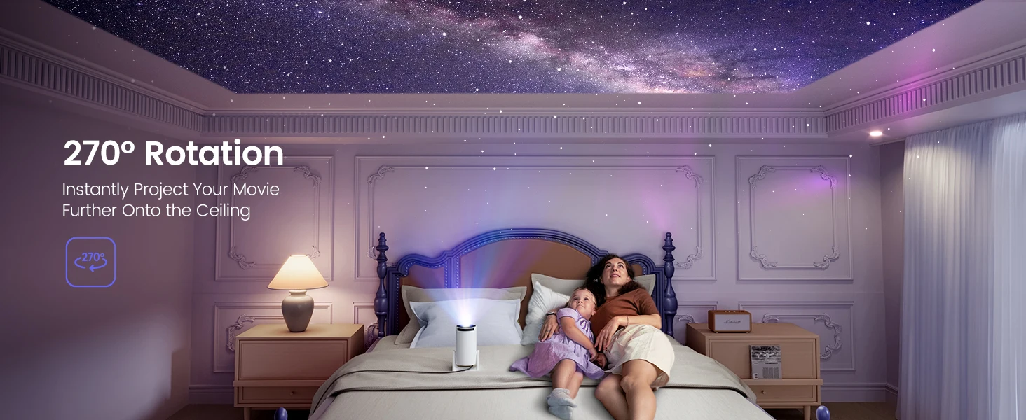 ?Versatile Interfaces & Worry-free Shopping?Equipped with HDMI, USB, and 3.5mm audio port, The projector easily connects to your Phone, Laptop, PC, TV Stick, PS5, or Switch. Plus, it makes a perfect gift for birthdays, Christmas, and New Year celebrations. Note:Projector is not battery-powered and needs to to be plugged in during use.For any questions, our 24/7 after-sales email support, 1-year Repair warranty, and Lifetime Technical Support are at your service.